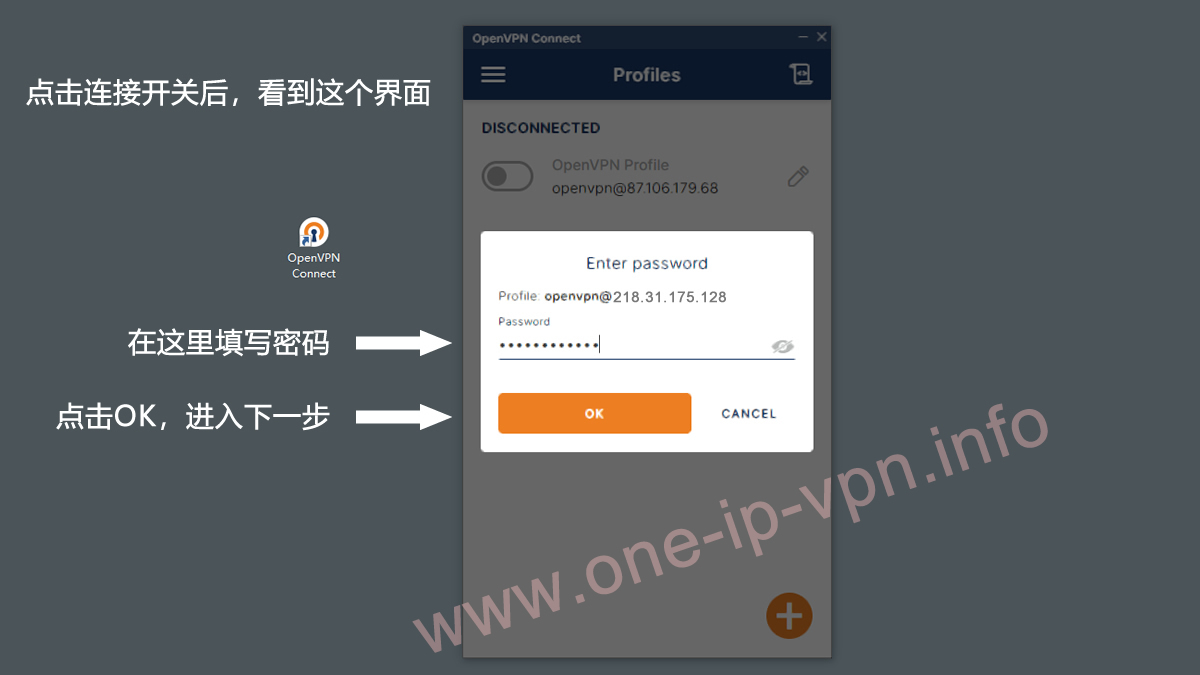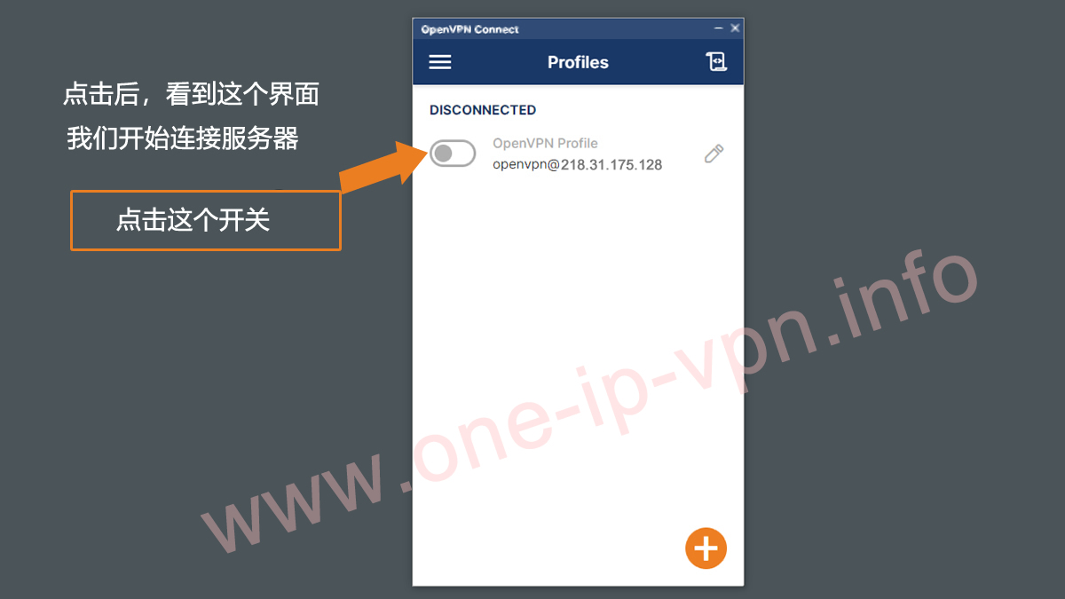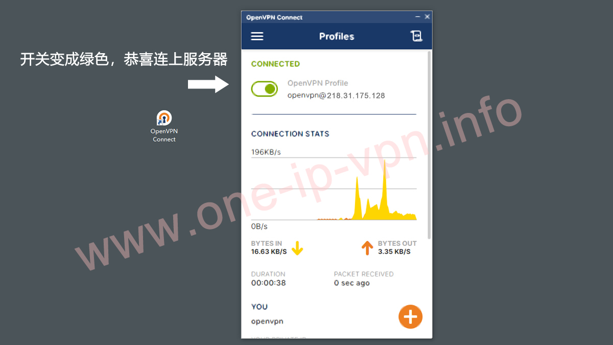 选择产品,预订产品并付款,收到确认邮件,在你的机器上打开Openvpn软件,输入账号密码,连接上服务器,开始冲浪!